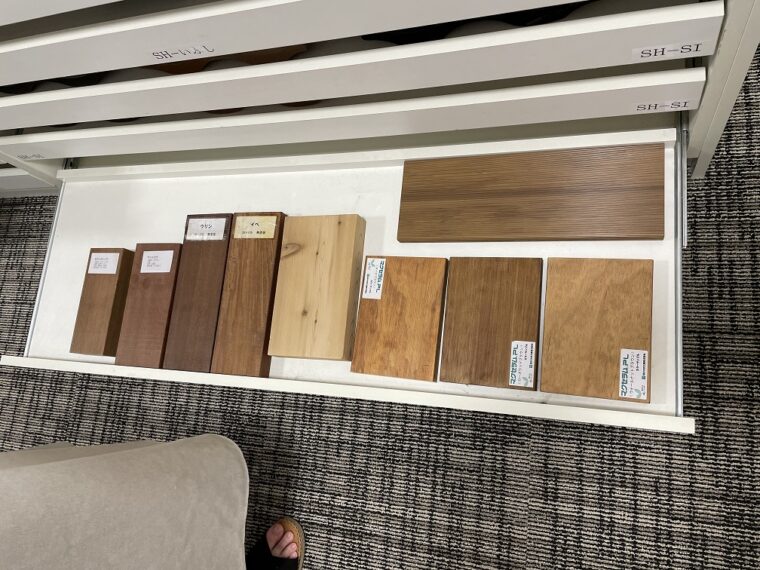 他にも屋根材やウッドデッキ材のサンプルなども置いてありここだけで小一時間潰せそうです笑